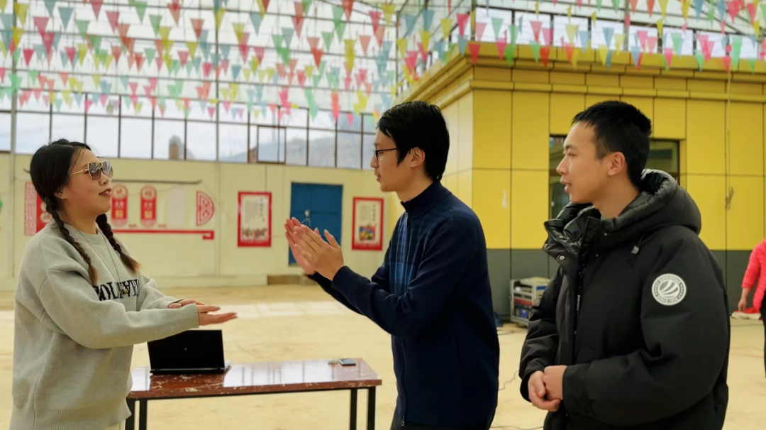 图为刘畅(右一)参加土康村金融反诈宣讲小品演出