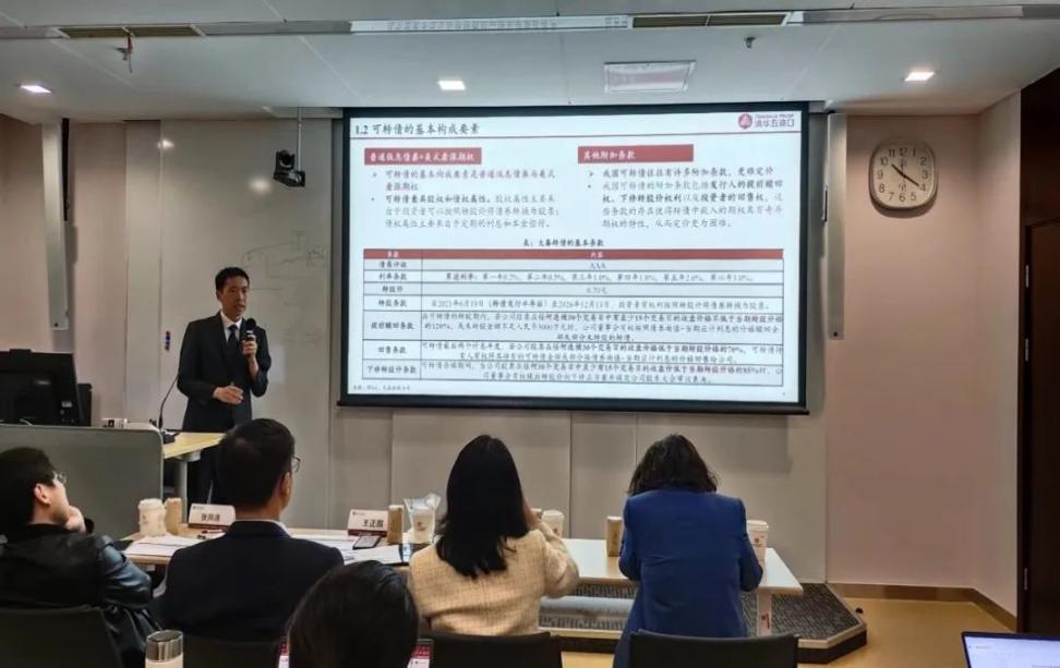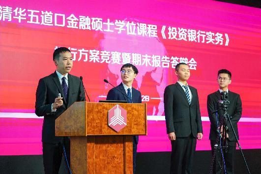 图为刘畅(左一)参加《投资银行实务》课程期末报告答辩会
