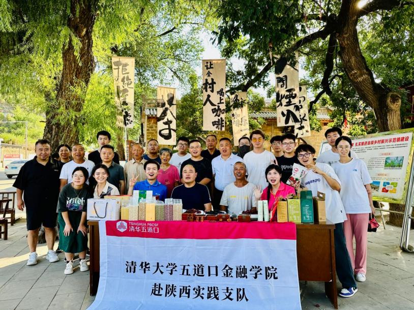 图为陕西支队(前排左一为张玉琢)与当地枣农共同直播推介农产品