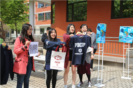 如此的热情自然大大感染了来往的老师与同学们。过往的老师同学纷纷停下脚步,一探究竟。在得知了路演的目的后,更是又不少的老师和同学都选择参与进来,既可以得到一份精美的纪念产品,同时还为此次学生节的举办贡献了力量。