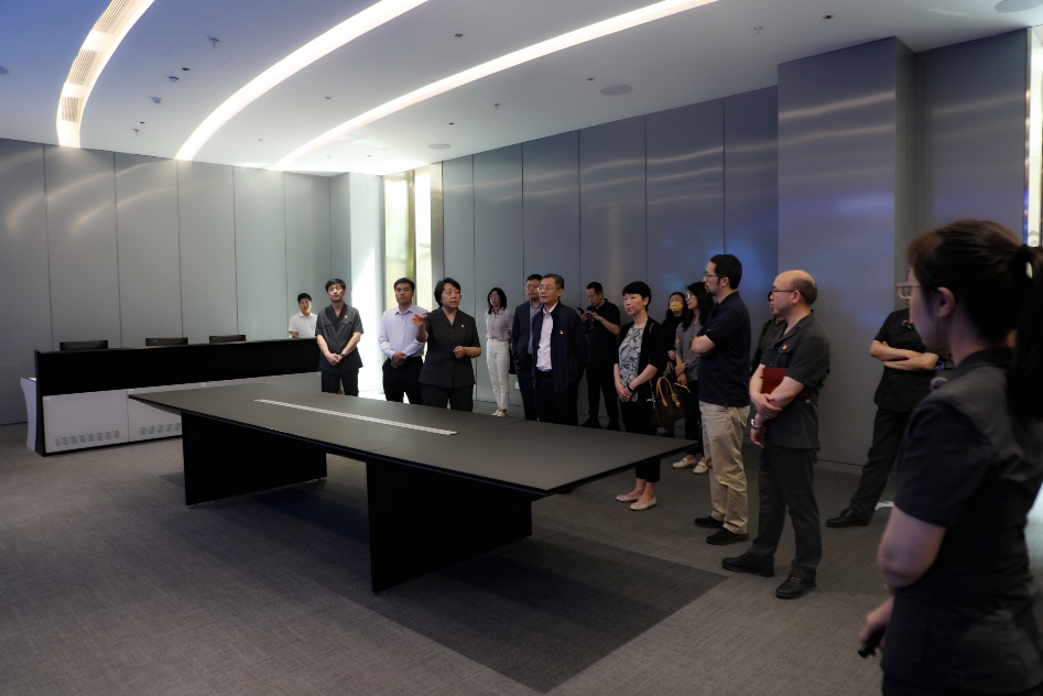 观看“以高质量金融司法服务金融高质量发展”主题成果展,了解金融法院办理的易安财险案、乐视网案、獐子岛案等经典案例和双轨双平台、损失核算、庭审百问等工作机制,对金融司法的建设成果有了直观的感受。走进数字融合法庭,“沉浸式”感受金融法庭的威严庄重。