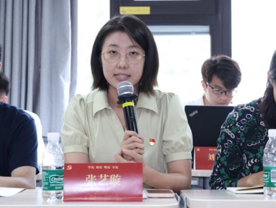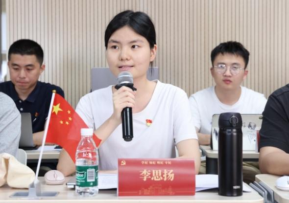 金博19党支部党员王宇桐分享了她对党纪学习的三点感悟:连续性、时代性和精准性。审计工作关乎国家经济的健康发展,也是关系到了社会的公平正义,在新岗位上她将严守政治纪律和政治规矩,以审计工作服务党中央重大决策部署。她感谢学校和学院的培养,表示将在工作中坚持奉献青春力量。