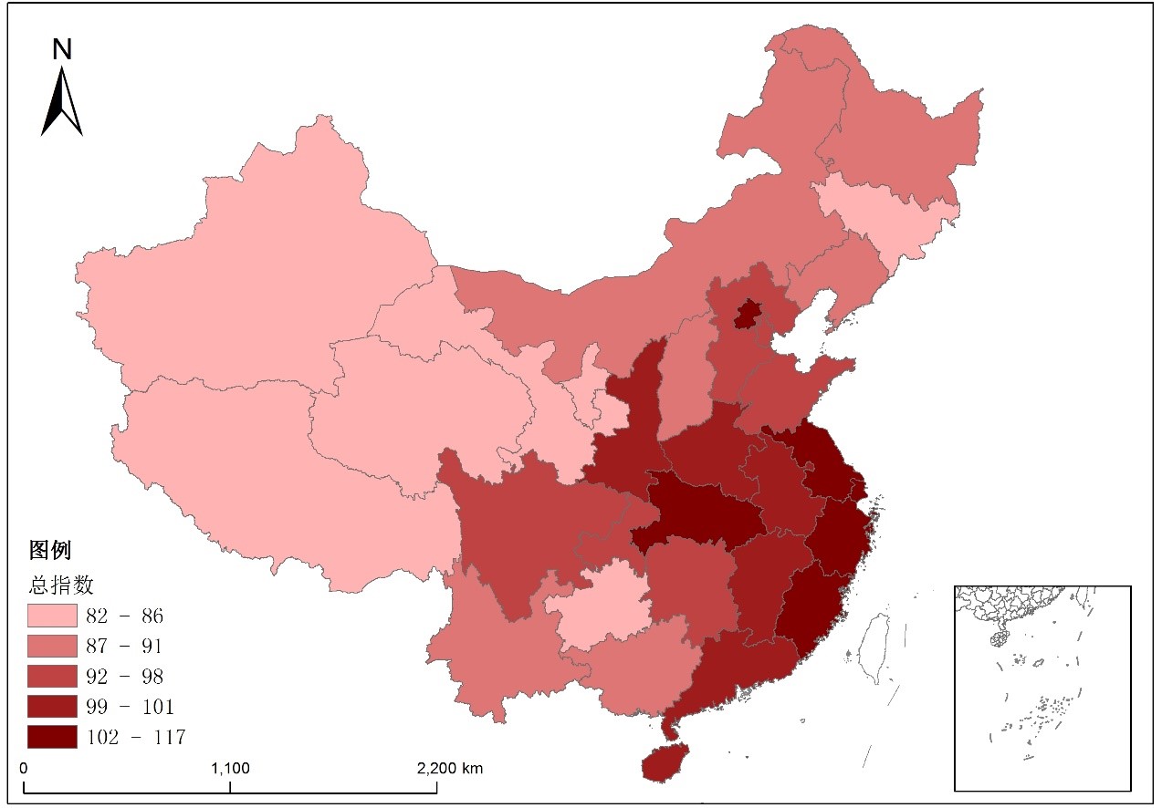 省级来看,东中部发达省区排名明显靠前,省域内差距对指数排名有显著影响;全国省级排名上海第一,北京第二,湖北第三。