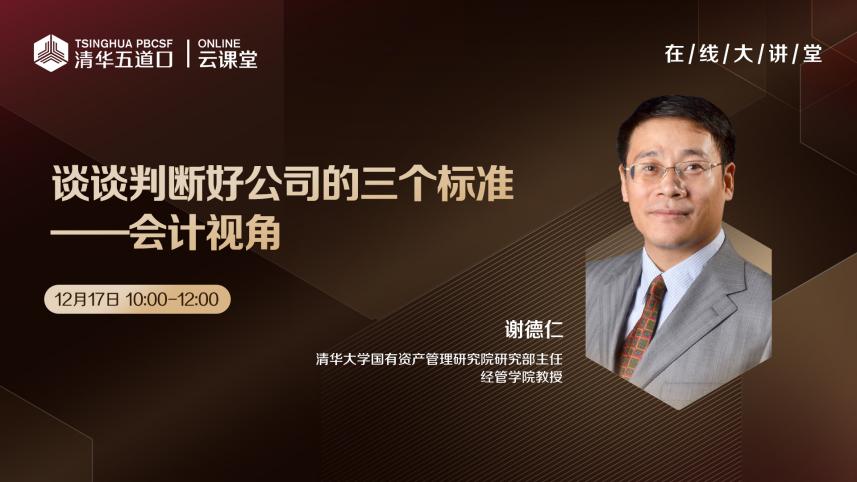 国有资产管理研究院研究部主任谢德仁,带来“谈谈判断好公司的三个标准——会计视角”主题讲座。谢德仁分享了他在上市公司质量评估方面的重要研究成果,并结合对A股上市公司财务数据多维度的分析,深入讲解基于会计视角评价公司质量的三大标准,来帮助大家提升对上市公司财务数据的研判能力,在国家提出加快建设金融强国之际,为线上受众提供了一次提高金融素养的宝贵机会。