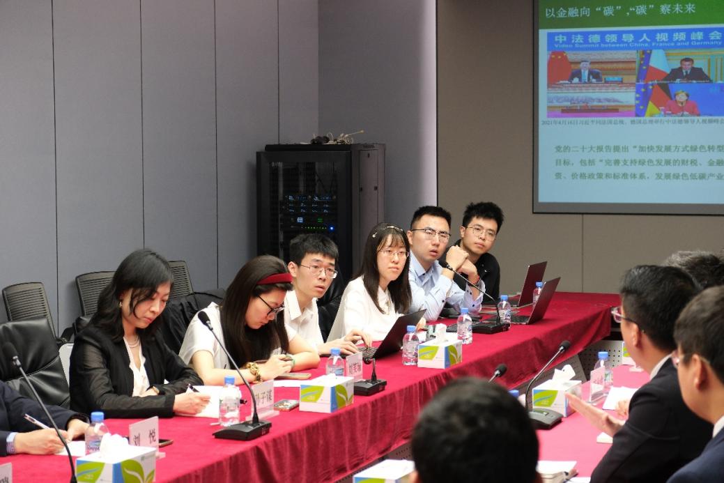 “2021年10月,四川省首笔2500万元的‘碳足迹’挂钩贷款落地,成为了全国最早有关支持碳减排的贷款之一……”来自五道口金融学院的博士研究生刘昊昂、何龙江、张心怡,正在台上自信地讲着。
