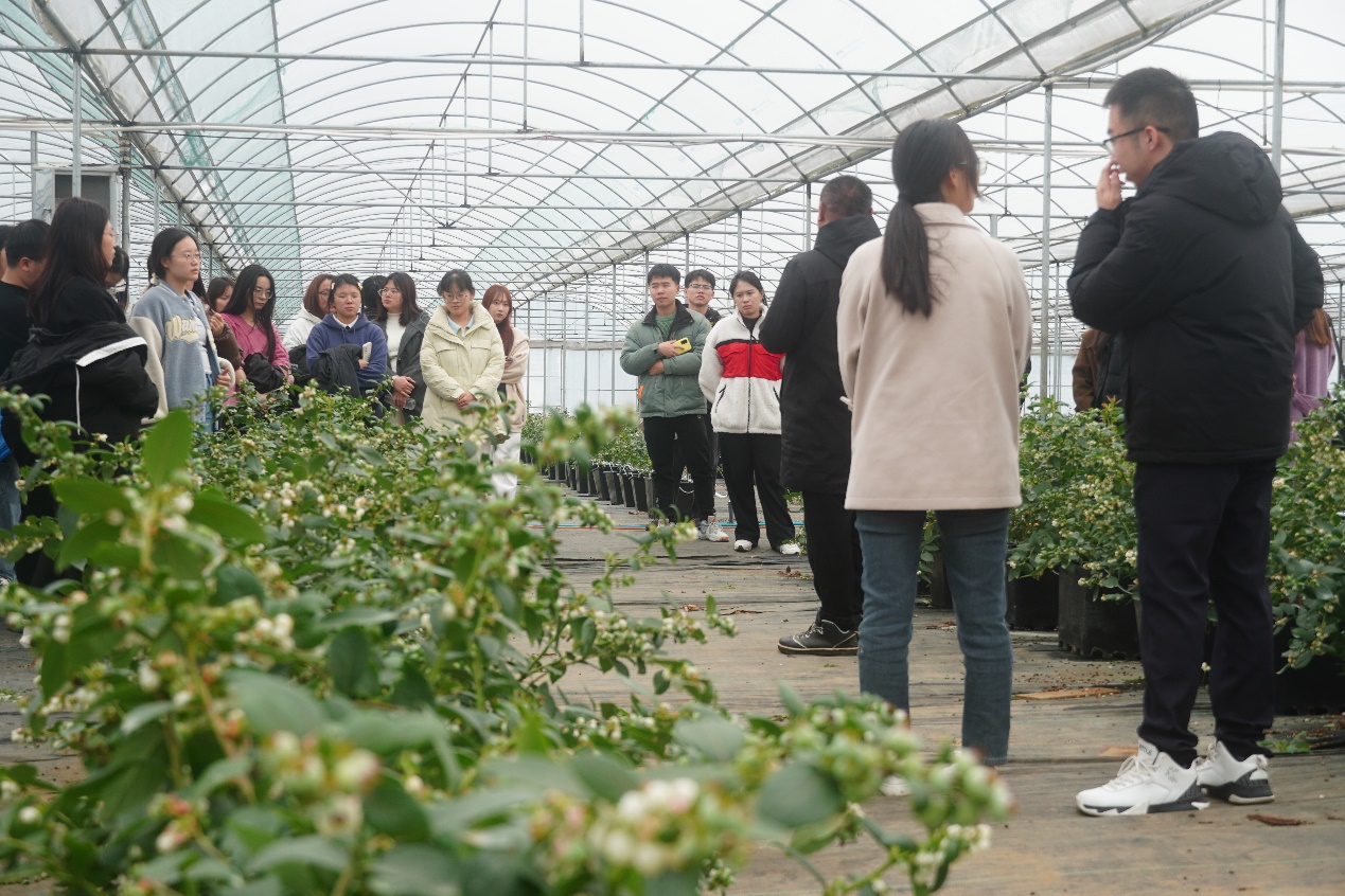 实践支队的同学们还参观了5G盆栽蓝莓种植基地一期项目,对现代科技与农业生产的深度融合有了更直观的认识,并从水利灌溉,生态发展的角度,对项目后续建设给出思考和建议。