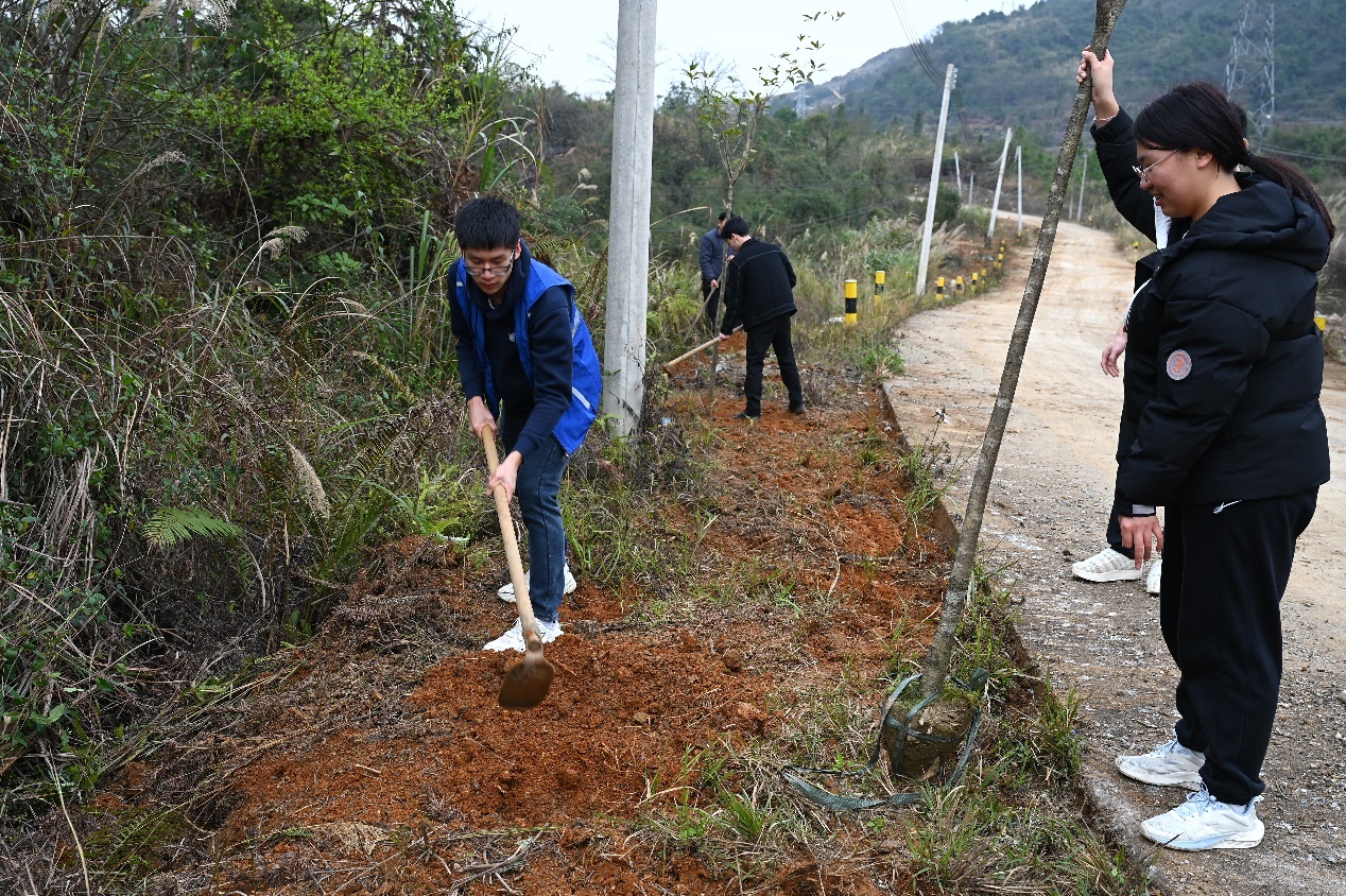 图为支队成员参加植树活动