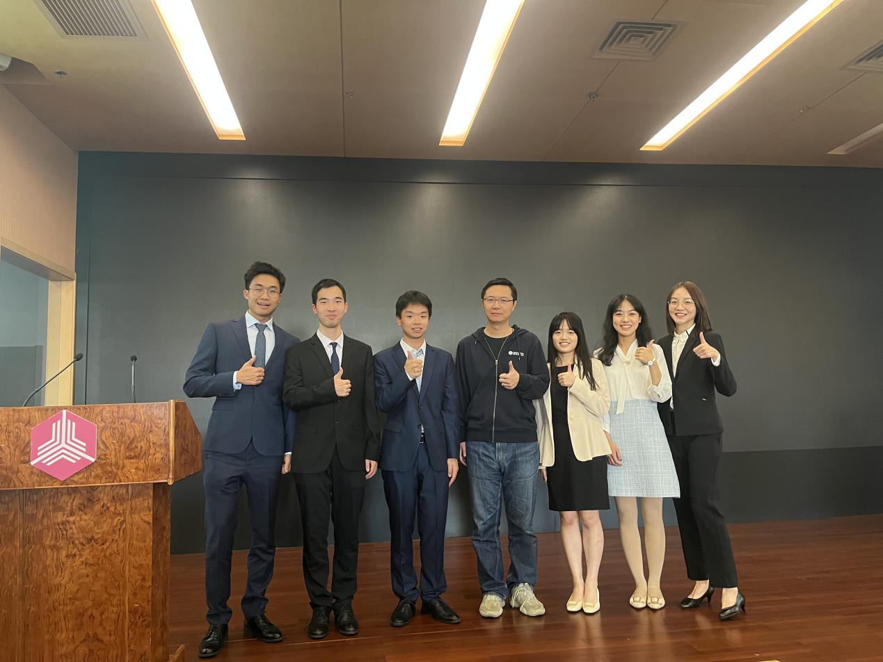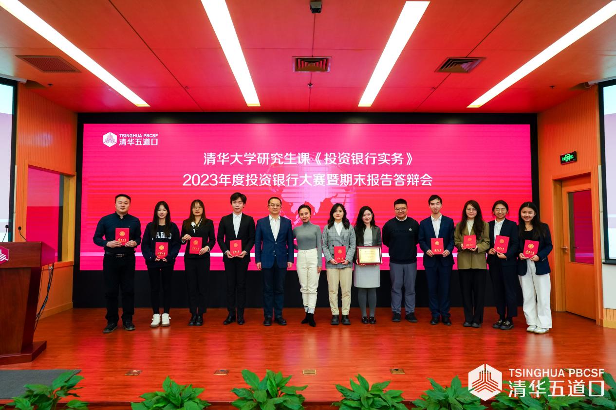 图为《投资银行实务》课程小组荣获第一名合影(右四为张力文)