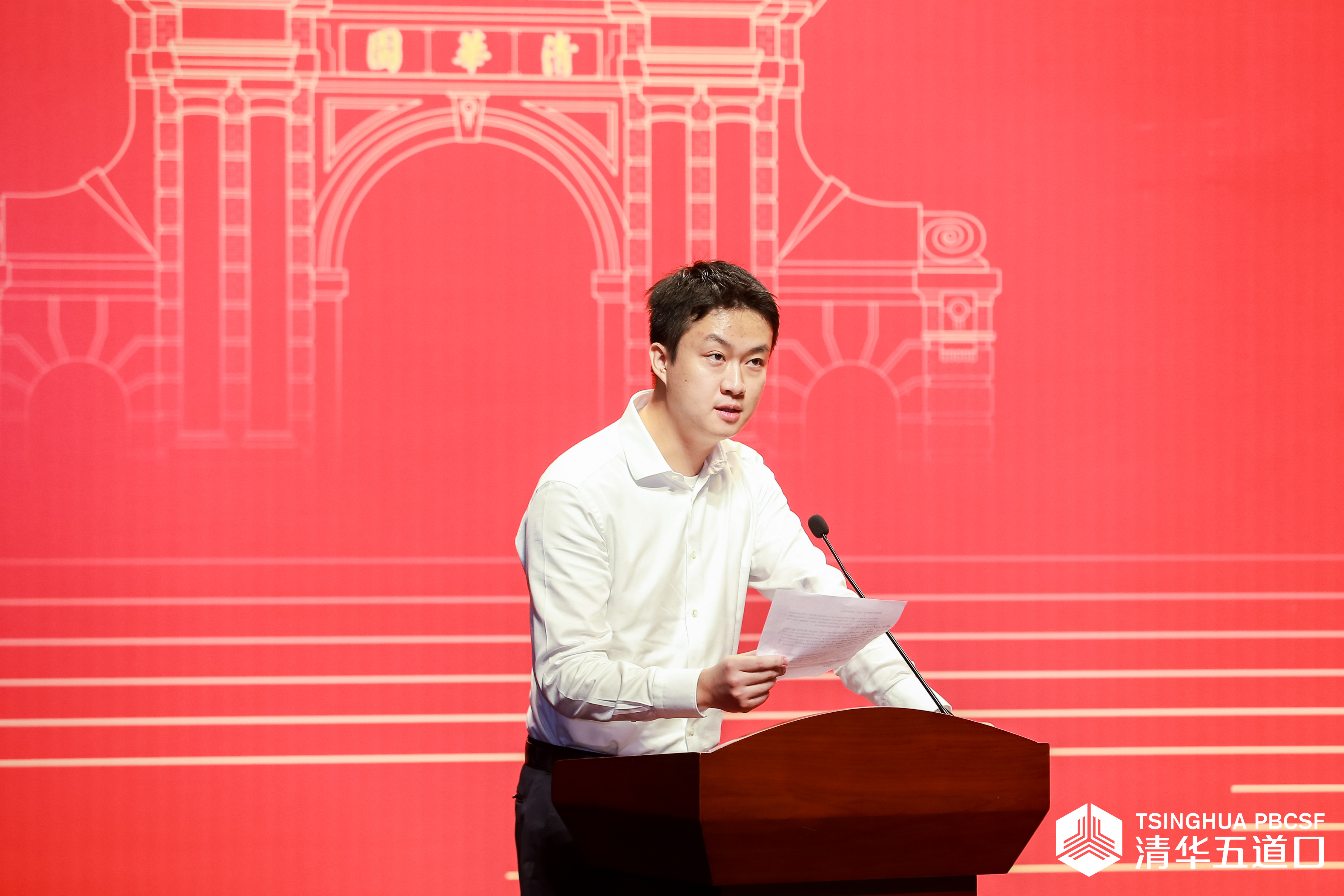 蒙民伟音乐厅隆重举行,清华-康奈尔双学位金融MBA2024级学生黄新徽作为新生代表发言。