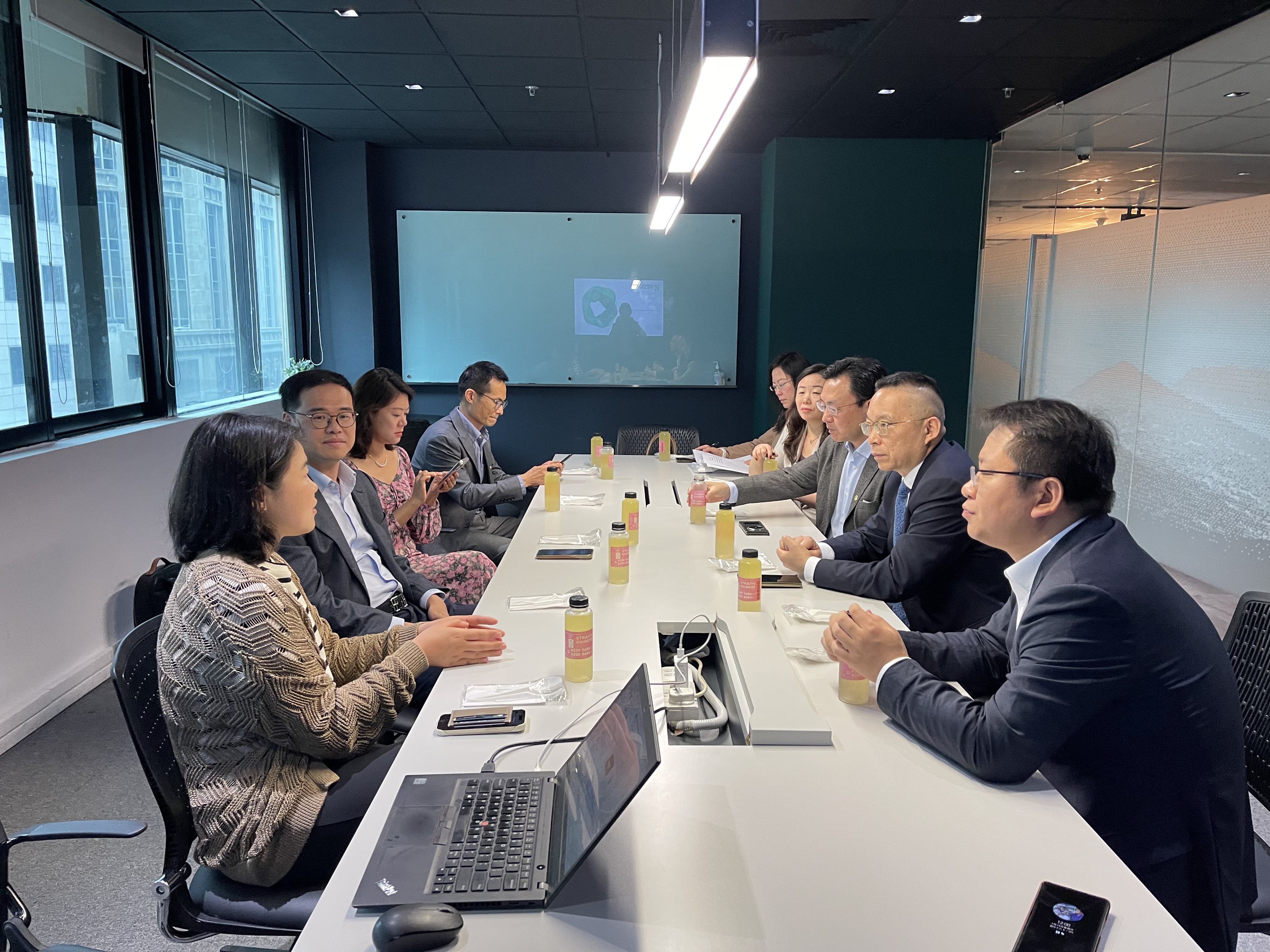 在通商中国,焦捷会见了通商中国总裁何致轩、慧眼中国项目负责人崔东红。会谈中,双方一致认为,持续加强中新两国人才交流势在必行,并在合作举办论坛会议、合作开展培训项目、加强青年人才交流等方面达成共识。