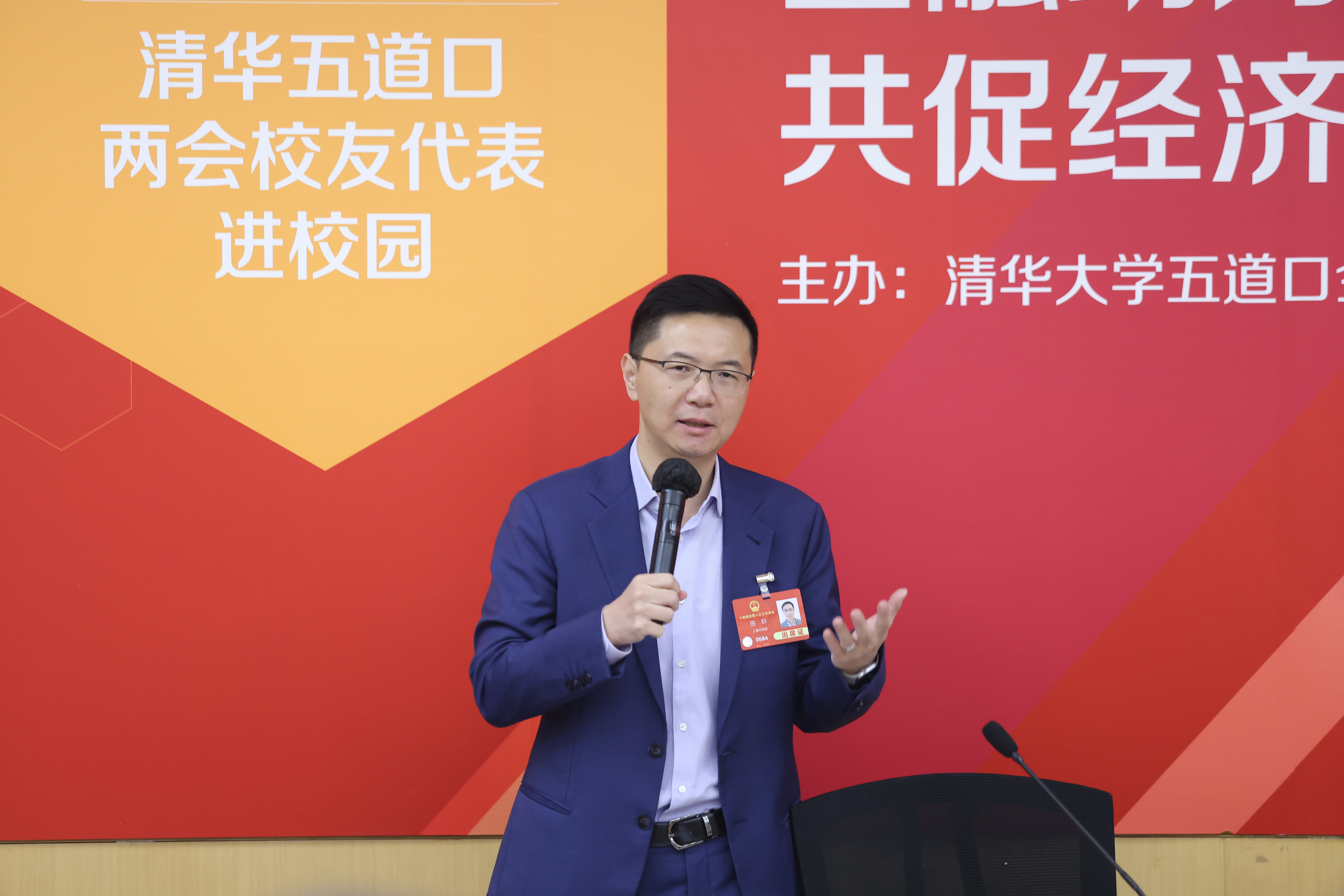 全国人大代表、五道口金融学院副院长田轩,全国人大代表、江苏昆仑互联新能源集团有限公司董事长、五道口金融EMBA江苏同学会会长刘怀平,全国政协委员、上海来伊份股份有限公司联合创始人、总裁、五道口金融EMBA2018级校友郁瑞芬出席活动。嘉宾们围绕“金融助力民企,共促经济发展”这一主题,就经济、金融、工业、消费等国家发展重要议题深入讨论,并与在场师生亲切交流。学院党委副书记、副院长王正位出席活动,参与活动的还有硕、博士生党团支部及学生组织骨干、教职工党支部、非全日制临时党支部等。