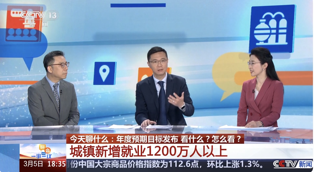 图为田轩接受央视新闻频道《两会1+1》节目采访