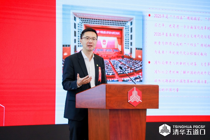 始终与中国金融改革和国家发展同向同行。他强调,学院将始终牢牢扎根中国大地,借鉴先进的办学模式,围绕“一基地+四中心”战略定位,持续打造国际领先的国家级金融教育与学术政策研究平台,努力朝着具有中国特色的世界顶尖金融学院前进。展望未来,他号召广大校友以“更专业、更科技、更国际、更人文、最清华”为发展路径和目标,携手共谱学院新篇章。