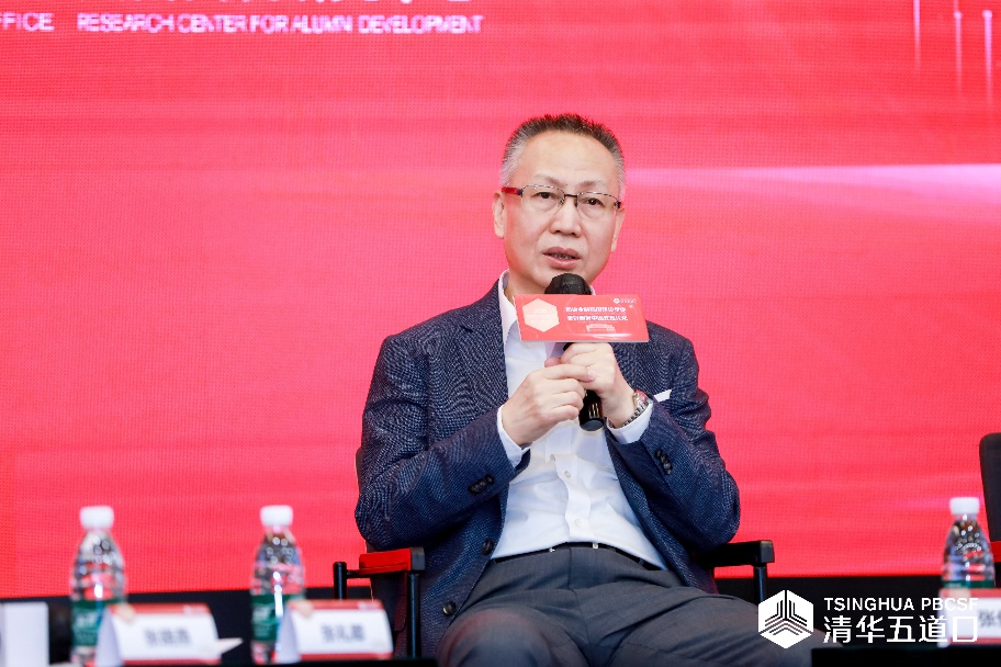 赵劲松代表清华校友总会致辞。他首先热烈欢迎各位嘉宾出席本次校友发展论坛暨校友终身学习日活动,并感谢各界对清华校友工作的长期支持。他表示,五道口金融学院的校友工作始终秉持着“不怕苦,敢为先,讲团结,重贡献”的传统,形成了独具特色的工作体系,不但为学院的发展凝心聚力,也为推动清华的整体校友工作注入了活力。他呼吁五道口校友们今后继续关注和支持清华校友总会工作,共同为国家战略和全球金融创新贡献力量。