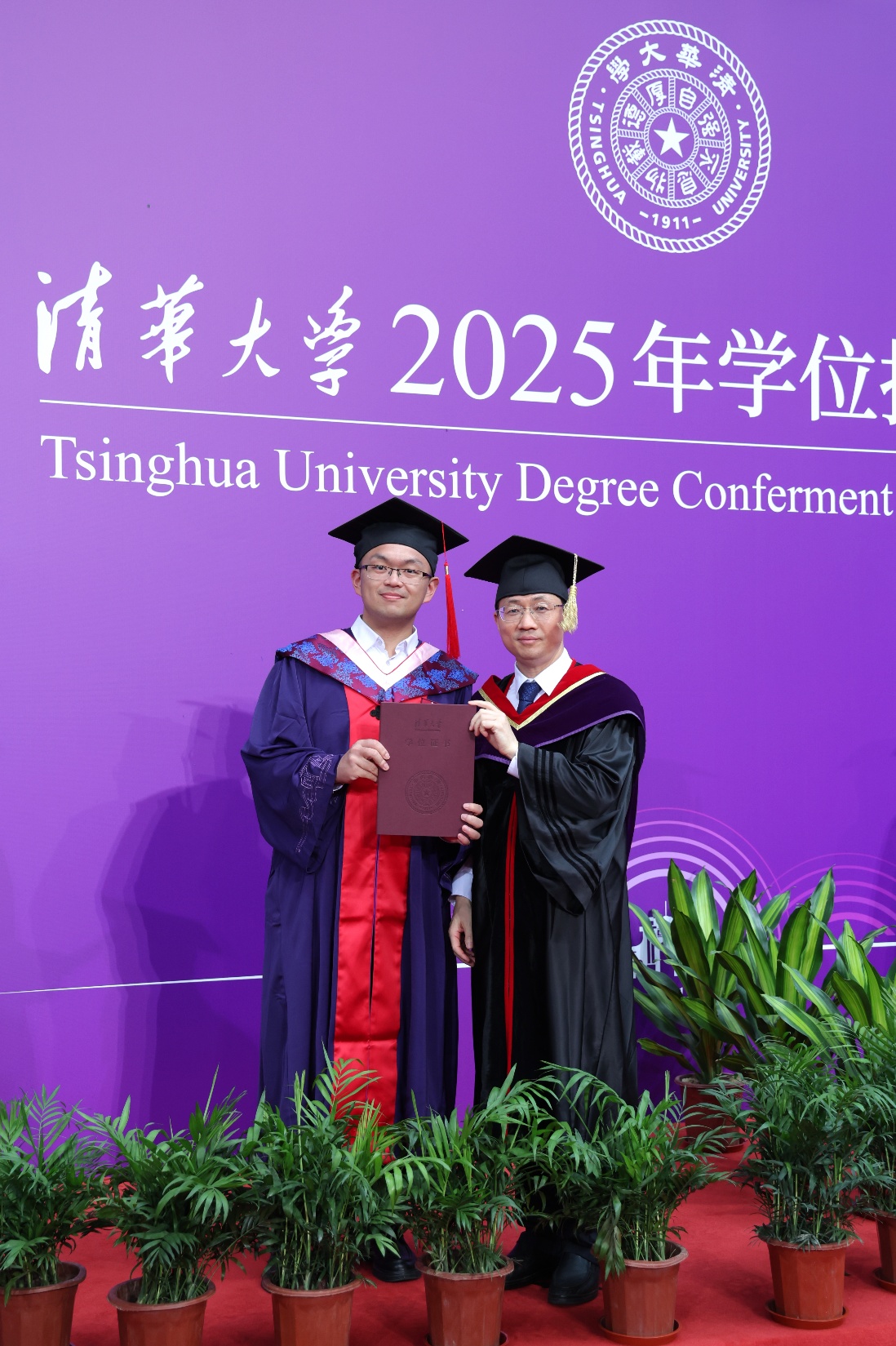 图为杨思远(左)参加毕业典礼拨穗仪式
