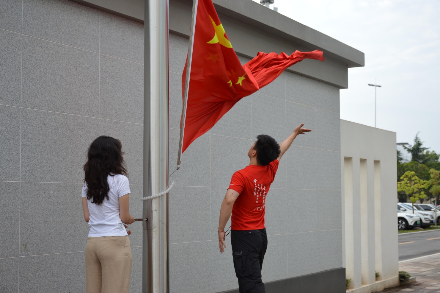 “清策永源”实践支队与北京大学公共卫生学院“心育沃土·产治共融”实践团并肩而立,共同完成升旗仪式。五星红旗冉冉升起,也为两校青年以专业所长服务地方发展拉开了帷幕。