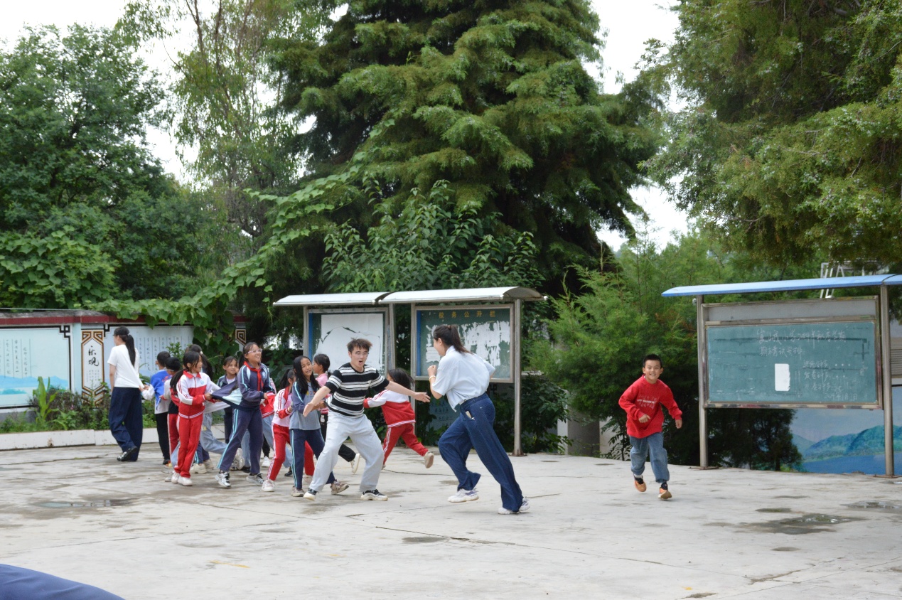 随后,我们走出教室,孩子们兴奋地牵着我们奔向操场,邀请我们一起跳起当地的民族舞蹈——“打跳”。鼓点般的节奏简单而热烈,孩子们拉着我们的手围成圈,脚步轻快有力,笑声此起彼伏。我们很快被他们的热情感染,仿佛不再是来访的客人,而是这片土地日常生活的一部分。