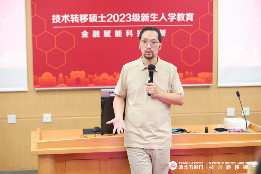 院长助理、副教授,金融专业硕士项目主任刘碧波出席活动并致辞。他对2023级新生表示热烈欢迎,并对同学们提出了三个期望:一是加强同学间的了解和融合,以学院为平台,促进金融要素和技术要素的流通,成为科学家的创业伙伴;二是希望同学们紧抓时代的变革与机遇,科技成果转化项目落地是实现价值和创造价值的过程,为国家经济高质量发展作出贡献,打通科技成果转化的“最后一公里”;三是保持初心、树立标杆意识,希望同学们珍惜学习机会,传承项目优良学风,坚持实践引领,以目标为导向,开启意义非凡、充满挑战、成果丰硕的学习之旅。