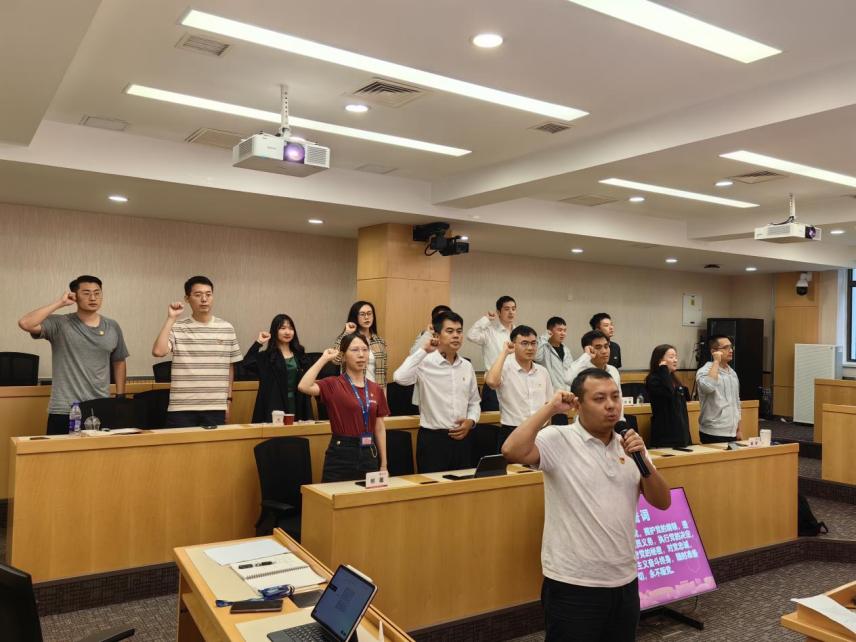 最后,技转硕23非全日制党支部全体党员及在场师生在庄严的党旗下重温了入党誓词,提醒党员同志们铭记庄严的承诺,切实发挥好党员的先锋模范作用,以更加饱满的热情投入今后的学习。